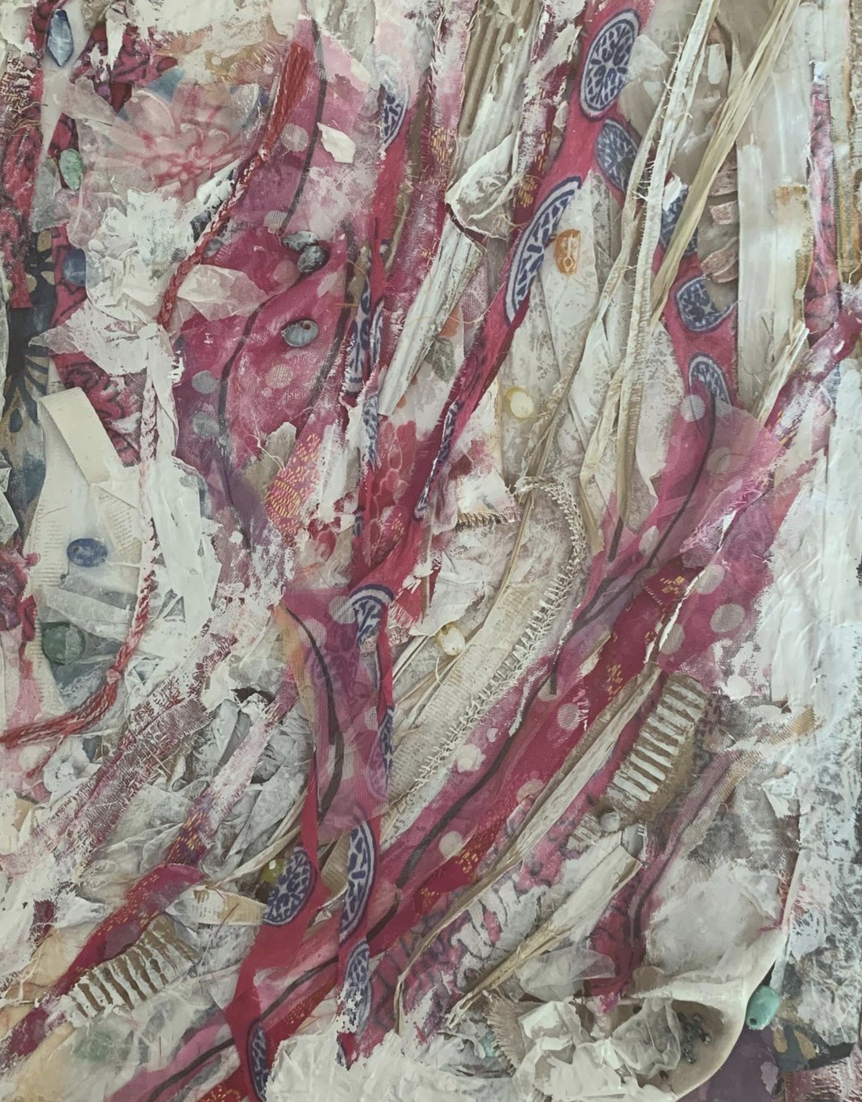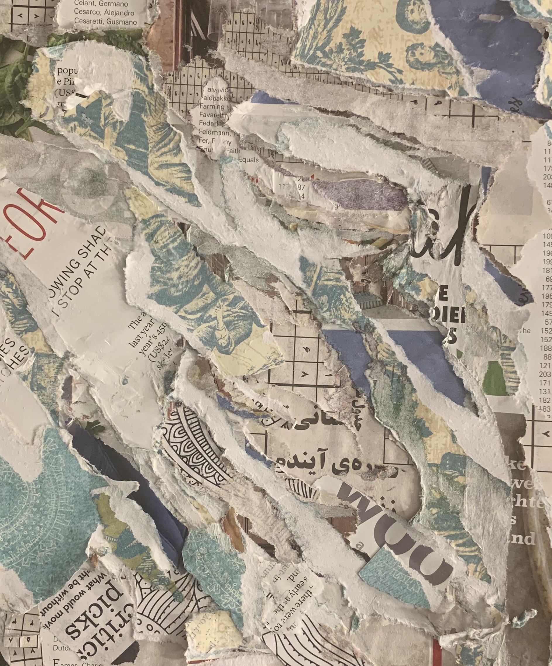 The term collage is from the French term papiers collés (or découpage), used to describe techniques of pasting paper cut-outs onto various surfaces. Contemporary collages include more mixed medias.