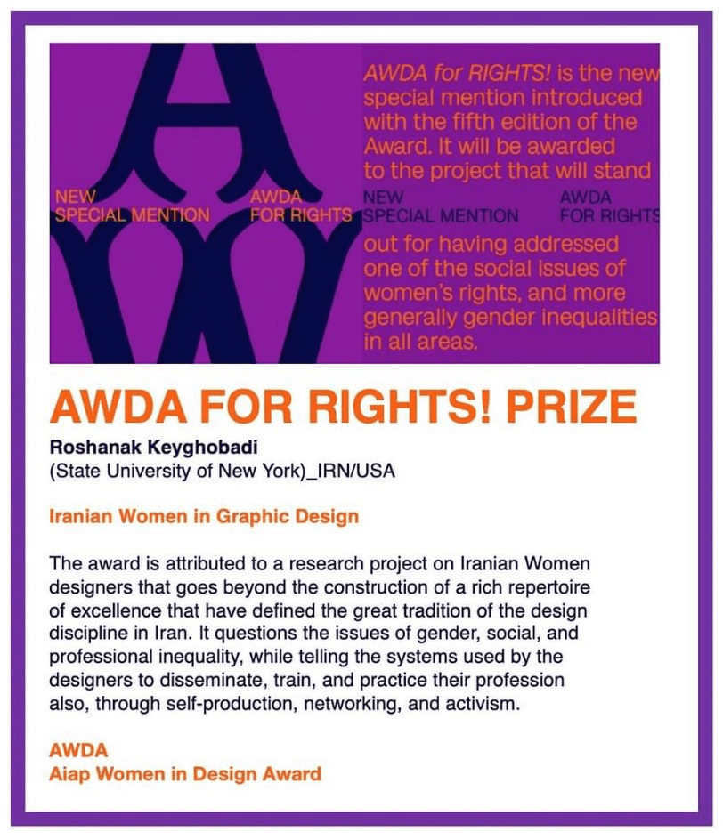 The award is attributed to a research project on Iranian Women designers that goes beyond the construction of a rich repertoire of excellence that have defined the great tradition of the design discipline in Iran. It questions the issues of gender, social, and professional inequality, while telling the systems used by the designers to disseminate, train, and practice their profession also through self-production, networking, and activism.